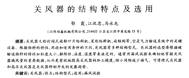 2006年中國油脂《關風器的結構特點及選用》——鄂霞、江漢忠、馬永先